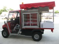 ALLESTIMENTO SPECIALE PER SPIAGGE CON FRIGO PER GELATI E BIBITE FRESCHE,ALIMENTATO DA UN GRUPPO ELETTROGENO ISOLATO, CON CENTINA COMPLETAMENTE IN ACCIAIO INOX E TELO PVC